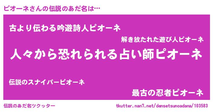 | ヘコむあだ名 | 『ピオーネ(爆)』『豆乳』『ピオっ子』 |