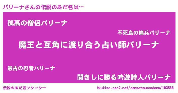 | 女子向けラノベタイトル風あだ名 | 『パリーナ恋絵巻』『パリーナ様がみてる』 |