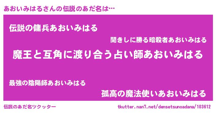 | 女子向けラノベタイトル風あだ名 | 『あおいみはる恋絵巻』 |