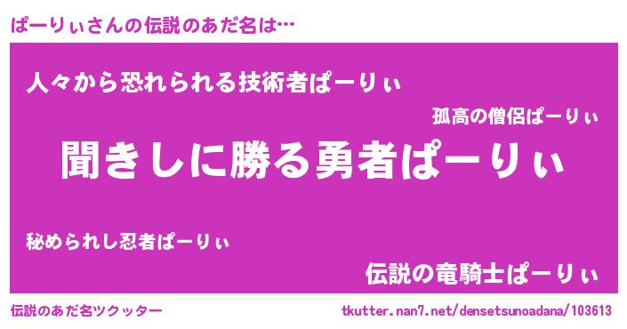 | ヘコむあだ名 | 『ぱーりぃ(遠い目)』『ぱーにー』 |