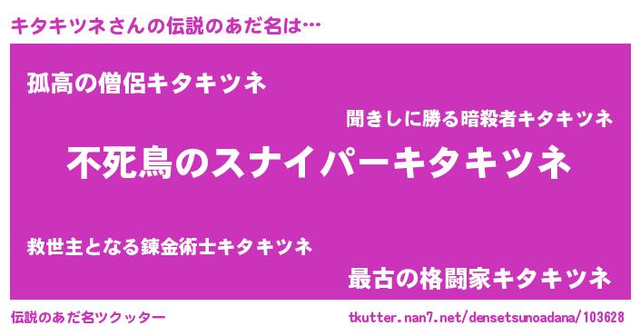 | 男性向けラノベタイトル風あだ名 | 『キタキツネアートオンライン』 |