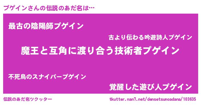 | 意味不明あだ名 | 『自称プゲイン』『プゲインフォーエバー』 |