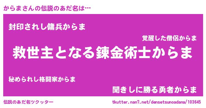 | ヒーロー風カッコイイあだ名 | 『慈愛の使者からま』『スーパーカラマ』 |