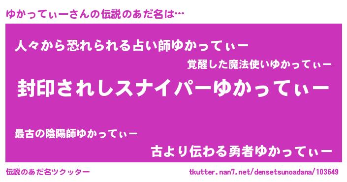 | 意味不明あだ名 | 『住所不定無職ゆかってぃー(86歳)』 |