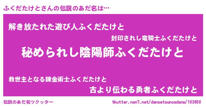 | 男性向けラノベタイトル風あだ名 | 『やはりふくだたけとの青春ラブコメはまちがっている 』 |
