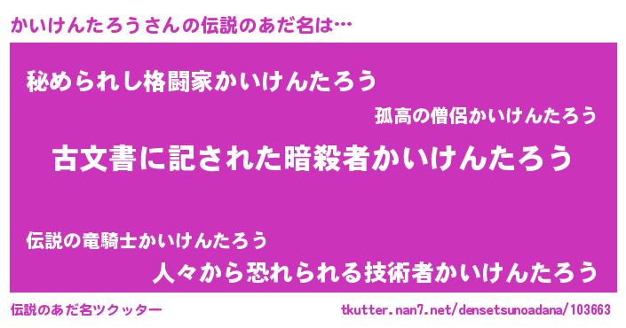 | 意味不明あだ名 | 『永久保存かいけんたろう』 |