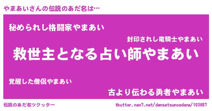 | 意味不明あだ名 | 『住所不定無職やまあい(56歳)』 |