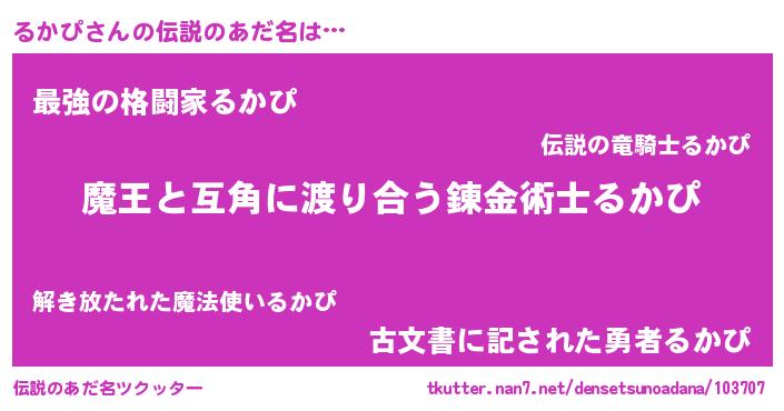 | 女子向けラノベタイトル風あだ名 | 『るかぴ恋絵巻』『るかぴの婚約者』 |