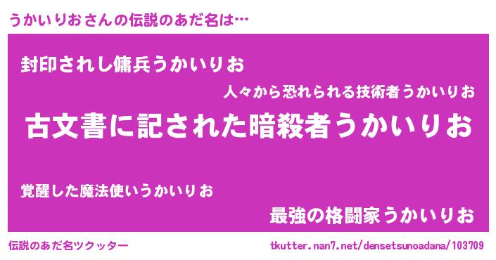 | ヒーロー風カッコイイあだ名 | 『仮面ウカダー』『最強戦士ウカイリオ』 |
