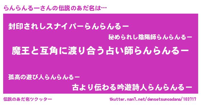 | 意味不明あだ名 | 『自称らんらんるー』 |