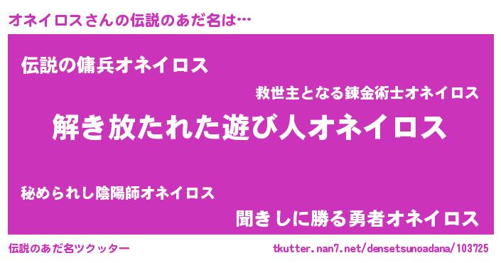 | 欧米人風あだ名 | 『ウサインオネイロス』 |