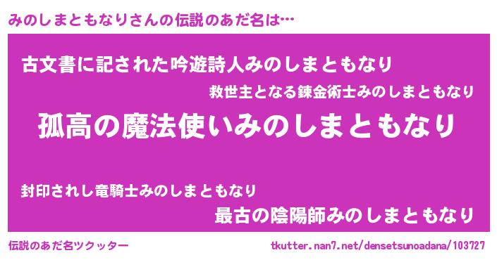 | 胡散臭い通販商品みたいなあだ名 | 『信頼と実績のサプリメント…その名も「みのしまともなり」』 |