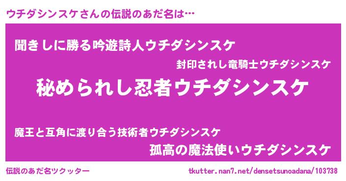 | 男性向けラノベタイトル風あだ名 | 『緋弾のウチダシンスケ』 |