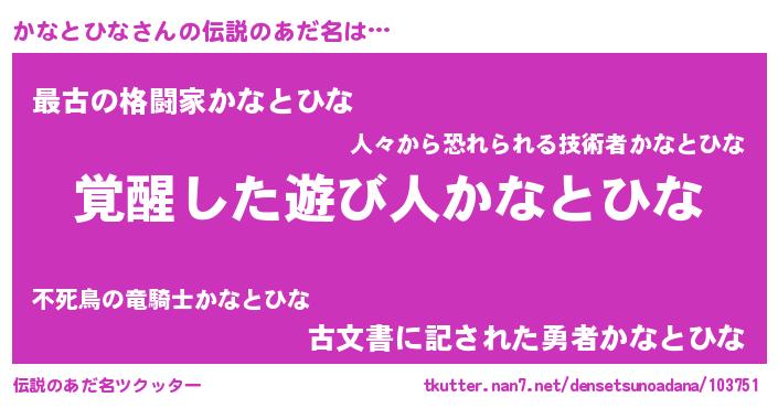 | 男性向けラノベタイトル風あだ名 | 『かなとひなの嫁は女の子じゃないと思った?』 |