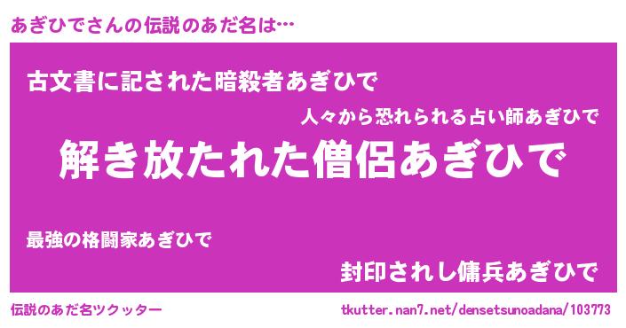 | 男性向けラノベタイトル風あだ名 | 『この素晴らしい世界にあぎひでを!』 |