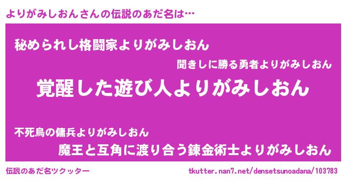 | 意味不明あだ名 | 『とにかく怪しいよりがみしおん』 |