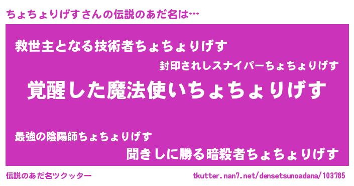 | ヘコむあだ名 | 『ちょお』『ちょちょりげす(小並感)』 |