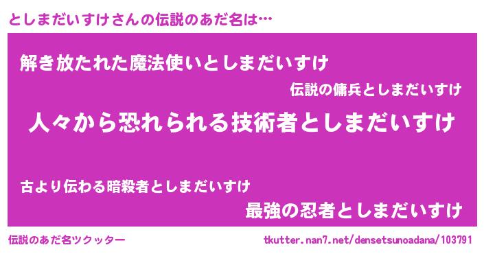 | 胡散臭い通販商品みたいなあだ名 | 『100人中100人が認めたマグネット磁石…その名も「としまだいすけ」』 |