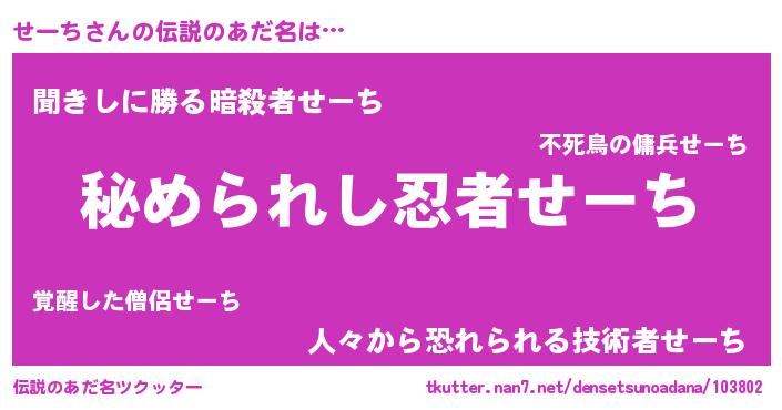 | 意味不明あだ名 | 『せーちフォーエバー』『自称せーち』 |
