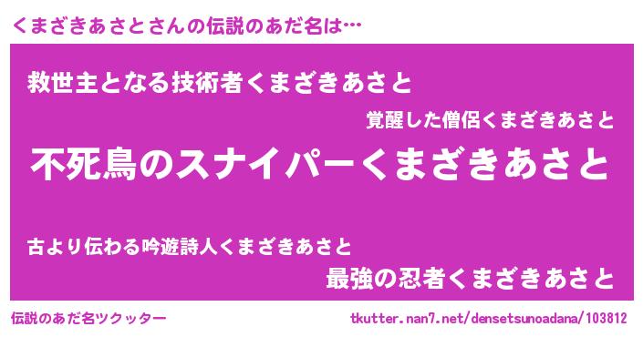| 胡散臭い通販商品みたいなあだ名 | 『モテモテ間違いなし霊験あらたかなお札…その名も「くまざきあさと」』 |