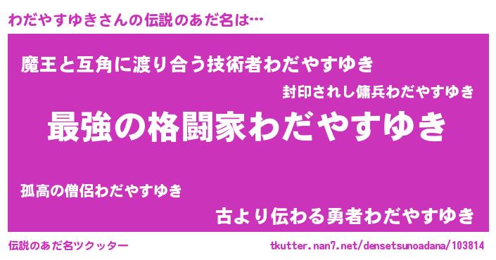 | 男性向けラノベタイトル風あだ名 | 『この素晴らしい世界にわだやすゆきを!』 |