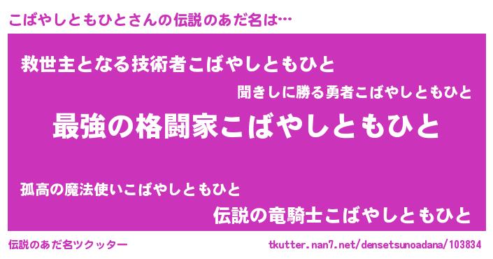 | 意味不明あだ名 | 『こばやしともひとフォーエバー』 |
