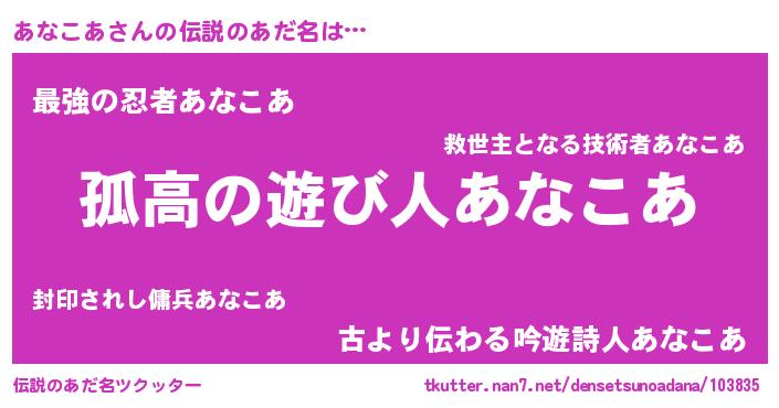 | 意味不明あだ名 | 『とにかく怪しいあなこあ』 |