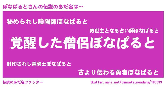 | 意味不明あだ名 | 『とにかく怪しいぼなぱると』 |