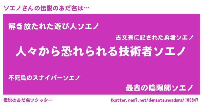 | ヘコむあだ名 | 『ソエを』『牛乳』『ソエノ(爆)』 |