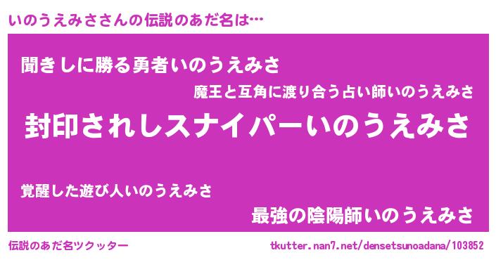 | 胡散臭い通販商品みたいなあだ名 | 『億万長者になれる霊験あらたかなお札…その名も「いのうえみさ」』 |