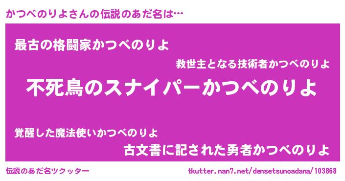 | 女子向けラノベタイトル風あだ名 | 『かつべのりよ姫と円卓の騎士』 |