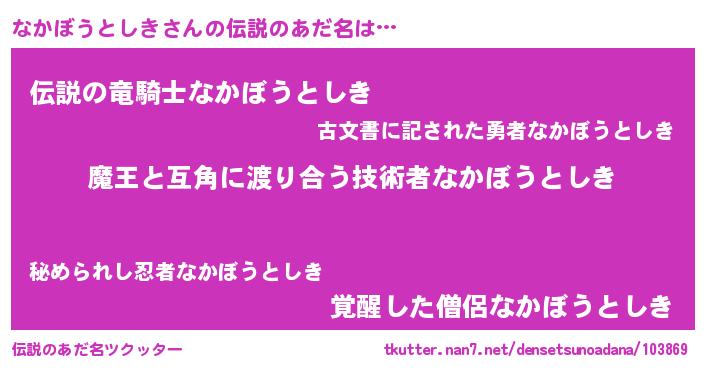 | 男性向けラノベタイトル風あだ名 | 『ノーゲーム・ノーナカボウトシキ』 |