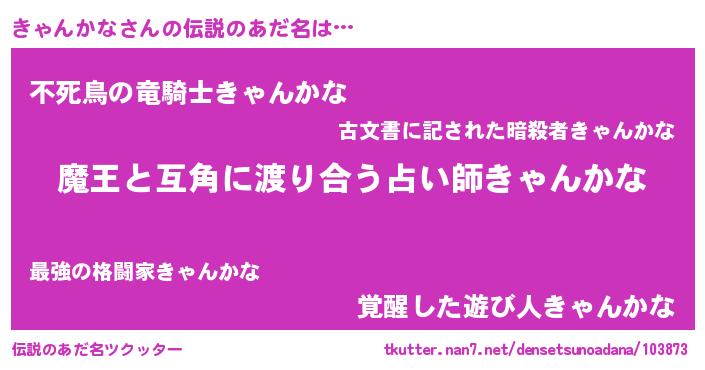 | 男性向けラノベタイトル風あだ名 | 『転生したらきゃんかなだった件』 |