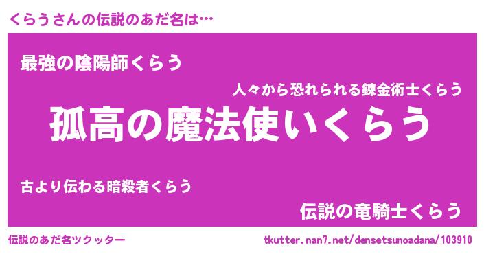 | 意味不明あだ名 | 『自称くらう』『とにかく怪しいくらう』 |