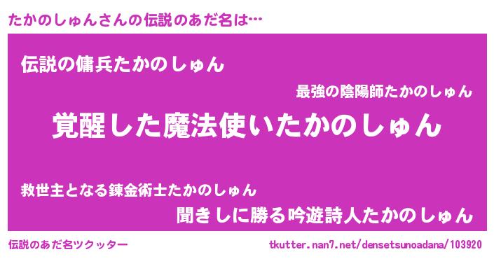 | 女子向けラノベタイトル風あだ名 | 『たかのしゅん様がみてる』 |