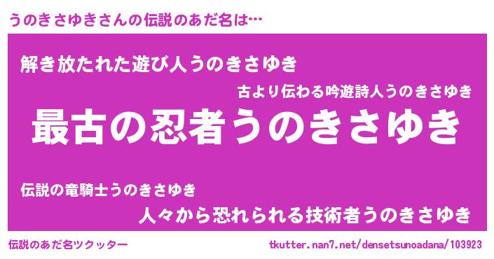 | 意味不明あだ名 | 『自称うのきさゆき』 |