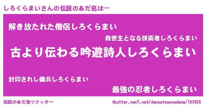 | 意味不明あだ名 | 『永久保存しろくらまい』 |