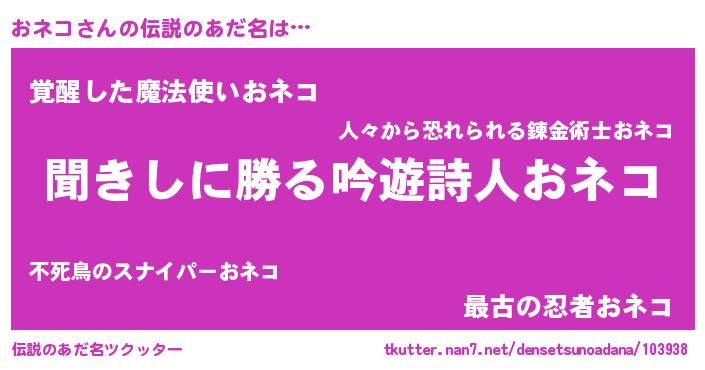 | 意味不明あだ名 | 『住所不定無職おネコ(10歳)』 |