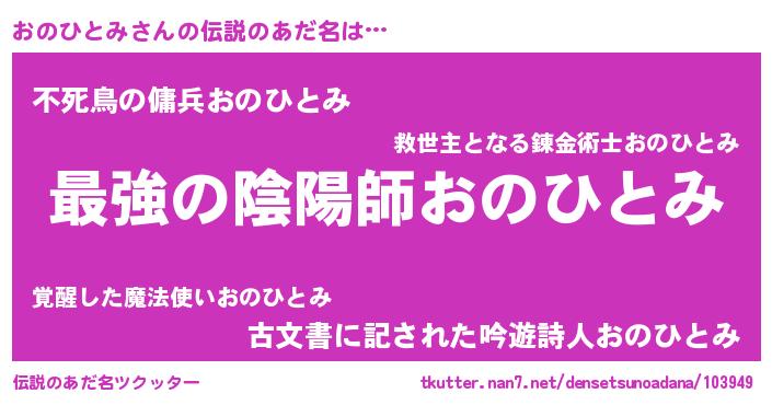 | ファンタジー風あだ名 | 『エターナルオノヒトミー』『オノフェル』 |