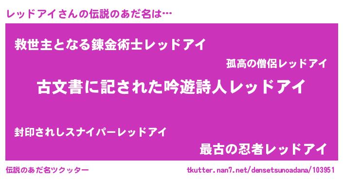 | ヘコむあだ名 | 『レッドアイ(小並感)』『レバニラ』 |
