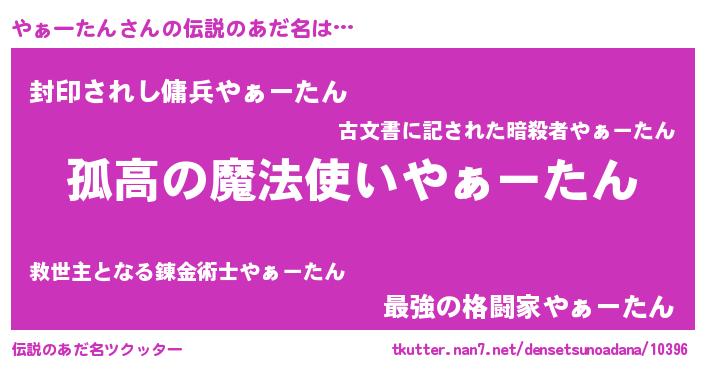 | 胡散臭い通販商品みたいなあだ名 | 『信頼と実績のサプリメント…その名も「やぁーたん」』 |