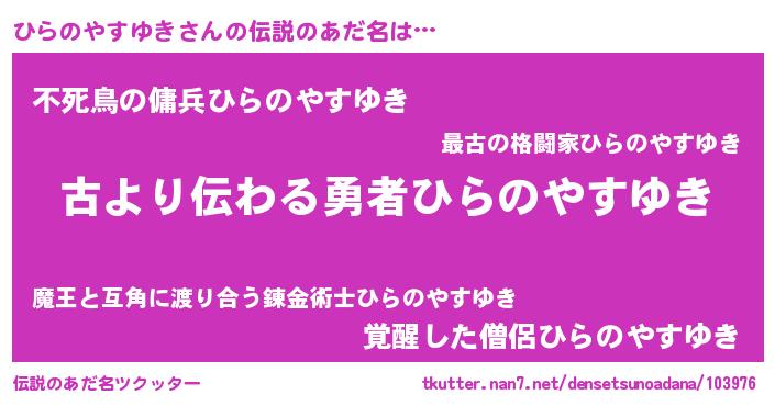 | ヘコむあだ名 | 『ひらのやすゆき(遠い目)』『ひらにゅー』 |