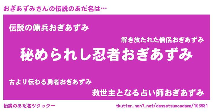 | 意味不明あだ名 | 『おぎあずみフォーエバー』 |