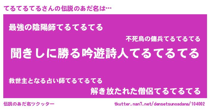 | ヒーロー風カッコイイあだ名 | 『ネオテルテルテル』『仮面テルダー』 |