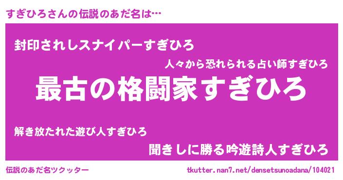 | ヒーロー風カッコイイあだ名 | 『ウルトラすぎひろマン』『仮面スギダー』 |