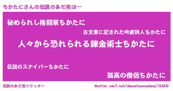 | ヒーロー風カッコイイあだ名 | 『正義の使者ちかたに』『黄金騎士チカ』 |