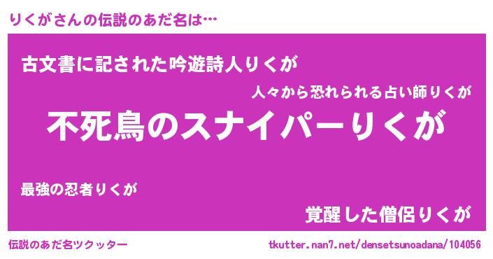 | 男性向けラノベタイトル風あだ名 | 『転生したらりくがだった件』 |