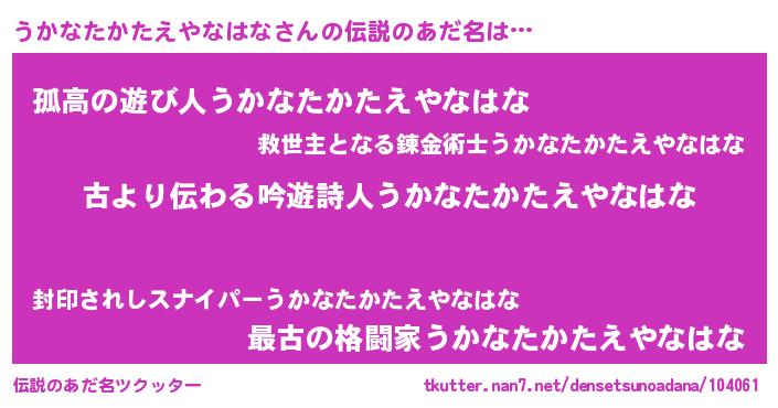 | ヘコむあだ名 | 『うかなたかたえやなはな(小並感)』 |