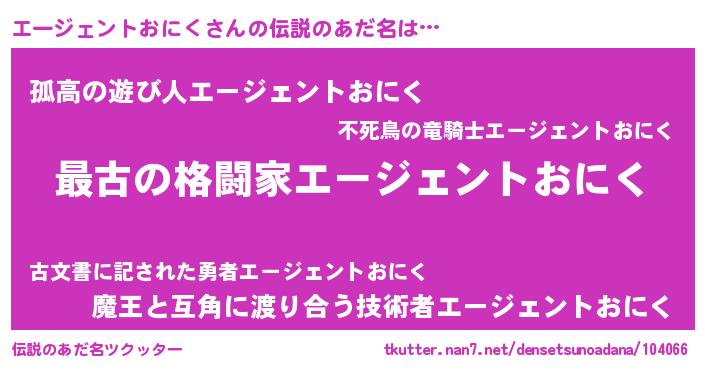 | 欧米人風あだ名 | 『アンジェラ・エージェントおにく』 |