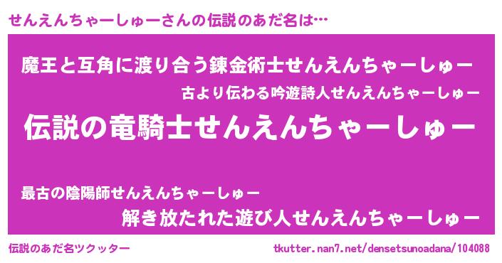 | ヒーロー風カッコイイあだ名 | 『超時空戦士センエンチャーシュー』 |